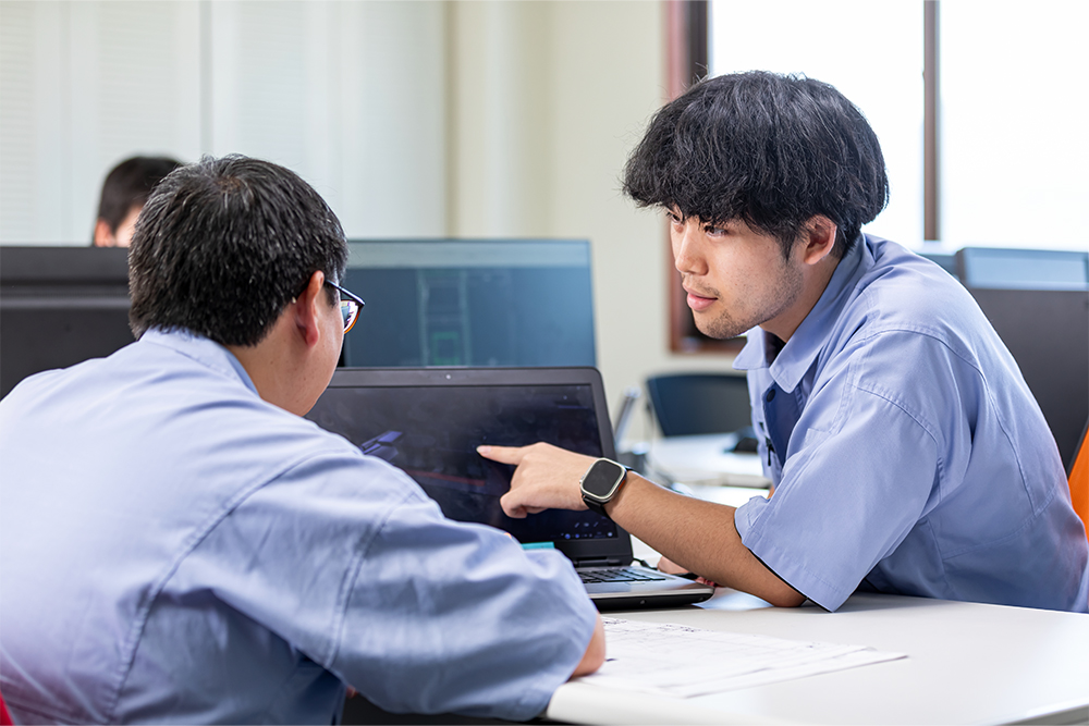 技術を次世代へ繋ぐ。受注案件一式の設計を完遂できるようになります。スキルや経験を駆使してプロジェクトを完遂させると同時に、これまで自分が受け継いできたノウハウを後輩へと伝え、次世代の成長を後押しします。