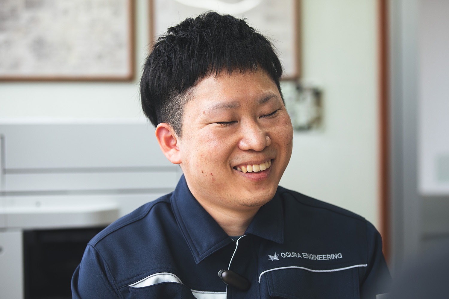 介護職、韓国への語学留学、ホテル、販売業など多彩なキャリアを経て、5年前にオグラエンジニアリングへ入社しました。コロナ禍による環境の変化をきっかけに「将来にわたって安定し、一生使い続けられる技術」を身につけたいと考え、全くの未経験から機械設計の世界へ飛び込みました。現在は京都の事業所で勤務しています。